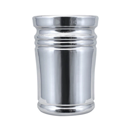 Nádobka má formu jednoduchého kovového kalichu. Kovová oprava zabraňuje protečení.
