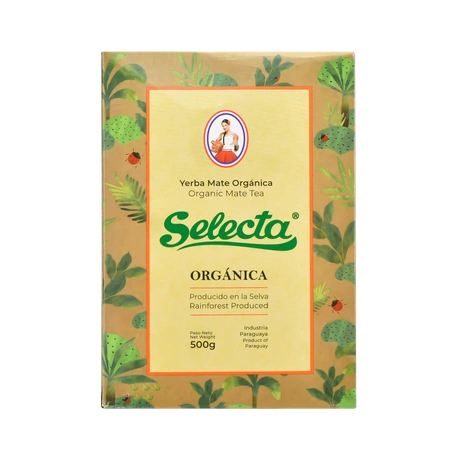 Selecta Orgánica je organická yerba maté bez přísad. Selecta je paraguayská značka s dlouholetými zkušenostmi s výrobou yerby maté, za jejímž celosvětovým úspěchem stojí slavná společnost EBSA. Yerba maté je balena ve dvou vrstvách - v kartonové krabici, uvnitř které najdete zatavený sáček s yerbou. Přestože pochází z Paraguaye, mírně se odchyluje od standardů typických pro tuto zemi. Má poměrně intenzivní chuť i vůni, ale kouřové akcenty jsou zde sotva patrné.