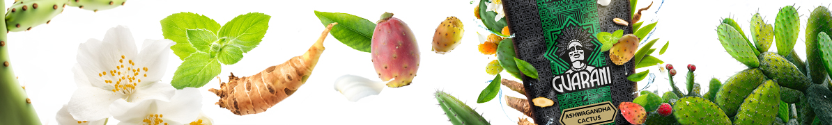 Guarani Ashwagandha Cactus obsahuje čím dál více ceněný doplněk stravy ashwagandhy. Jedná se o indickou rostlinu, která se již po staletí používá v tradiční medicíně - ájurvédě. Vykazuje mnoho cenných vlastností, ale za zmínku stojí zejména jeho pozitivní vliv na pohodu. Její hořká, kořeněná chuť se dobře snoubí s paraguayskou, kouřovou chutí yerby maté a navíc je doprovázena přídavkem ženšenu. Hořkost yerby maté je narušena jemně sladkou a nadpozemsky aromatickou vůní květů opuncie, včetně kaktusovýcha jasmínových příchutí.