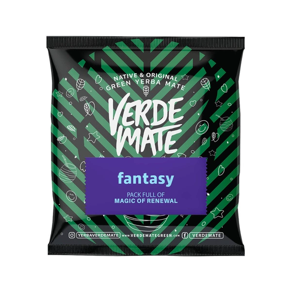 - Verde Mate Green Fantasy je energizující kombinace yerba maté, hrušky, rozinek a vanilky, obohacená o šípky, ibišek a okvětní lístky chrpy. Přírodní kofein dodává energii a fantastická chuť potěší!