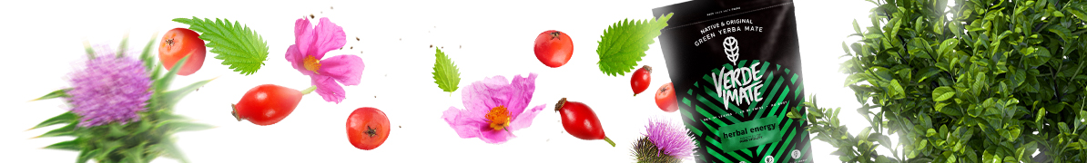 - Verde Mate Green Herbal Energy je yerba maté s osvěžující chutí a bylinným nádechem. Obsahuje zelený čaj, mátu, divokou růži a další. Přírodní povzbuzení pro aktivní lidi - ideální pro každodenní užívání, v práci nebo před tréninkem.