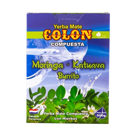 - Colón Compuesta Moringa Katuava Burrito 0.5 kg 500g is a Paraguayan yerba mate with natural ingredients. It is distinguished by an intensely bitter flavour with a hint of herbal refreshment.