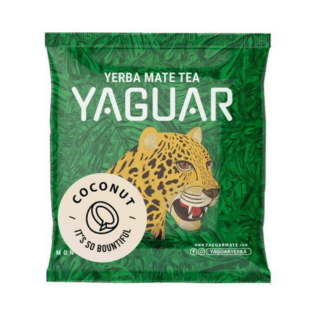 - Yaguar Coconut is, as the name suggests, a heavily coconut-flavoured yerba mate. The pleasant, exotic aroma of coconut comes to the fore as soon as you open the packet. Yummy!