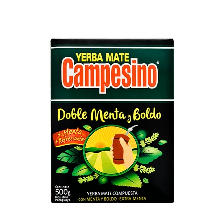 Campesino Double Menta Mate - le maté paraguayen avec de petits bâtonnets, complété par des herbes : menthe, boldo et arôme de menthol. C’est une proposition excellente pour les fans des saveurs très rafraîchissantes. Le maté stimule bien et son goût est intense. Son arôme fait penser aux bonbons de menthe. Le boldo et le manthe sont appréciés pour ses qualités bénéfiques et, de plus, ils ont effet rafraîchissant.