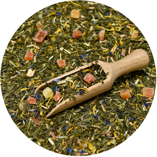 Den Tee in eine Tasse gießen und mit heißem Wasser aufgießen. Zugedeckt ziehen lassen. Ein paar Minuten warten.