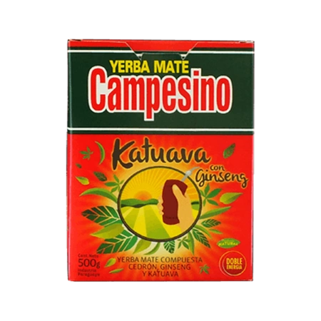 - Campesino Katuava ist Mate Tee aus Paraguay mit der Rinde des Strauches catuaba (Erythroxilum catuaba), Ginseng (Panax ginseng) und Zitronenstrauch (Aloysia triphylla). Eine perfekte natürliche Alternative für diese, die eine Anregung suchen.