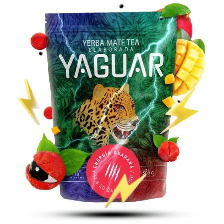 - Geschmacksvariante Yaguar Energia Guarana ist perfektes Produkt für Personen, die einen stark stimulierenden Mate Tee suchen. Außer der getrockneten Blätter finden wir in der Verpackung gemahlene Guarana-Früchte.