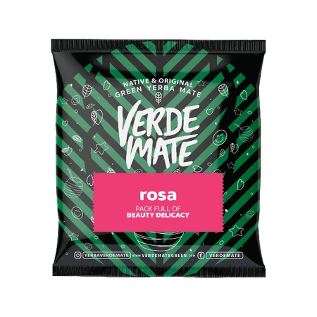 - Verde Mate Rosa ist eine Mischung aus Rose und Mate Tee. Hibiskus ist auch eine wichtige Zutat. Das Produkt enthält Blütenblätter und Teilchen von Früchten der Rose mit Hibiskus.