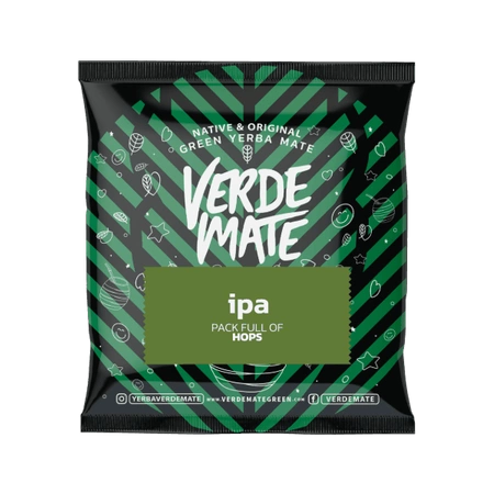 - Verde Mate Green IPA 50 g ist eine ungewöhnliche Variante der geschätzten brasilianischen Marke des Mate Tees, die vom Biergeschmack inspiriert wird. Eine der Hauptzutaten dieser Mischung ist Hopfen. Andere Zutaten sind Minze, Weißdorn, Ringelblume.