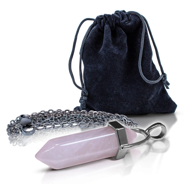 Ciondolo con quarzo rosa in sacchetto + catena