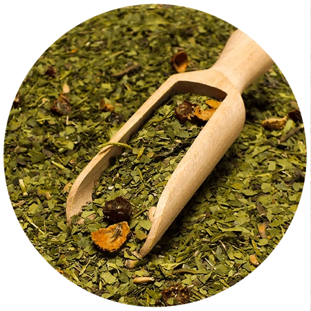 - Skład: 90,5% zielona yerba mate, czystek, ostropest, herbata gunpowder, pokrzywa, dzika róża (owoc), mięta, szałwia, koper.