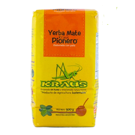 - Kraus Pionero 500 g 0.5 kg es yerba mate de Argentina sin aditivos. Tiene un sabor y aroma más intenso que el buque insignia Kraus Orgánica.