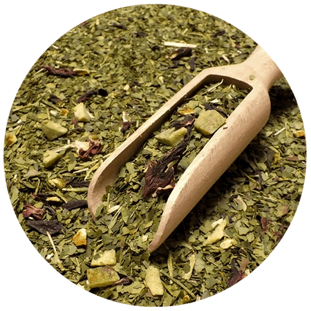 - Skład: 91% zielona yerba mate suszona powietrzem, pomelo, hibiskus, pomarańcza, naturalny aromat.