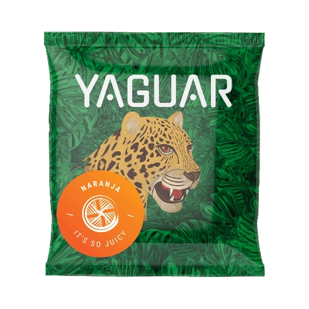 - Yaguar Naranja 50 g es una yerba mate refrescante con piel de naranja. La adición introduce una nota afrutada característica al conjunto, que combina perfectamente con el ligero amargor de la yerba mate clásica.