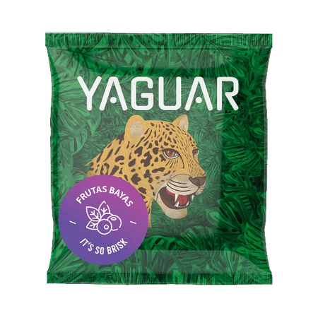 Yaguar Frutas Bayas combina notas dulces y refrescantes. El aroma afrutado de la fresa se mezcla con el refrescante aroma de limóncillo. La yerba estimula bien y contiene vitaminas y antioxidantes que estimulan la inmunidad.