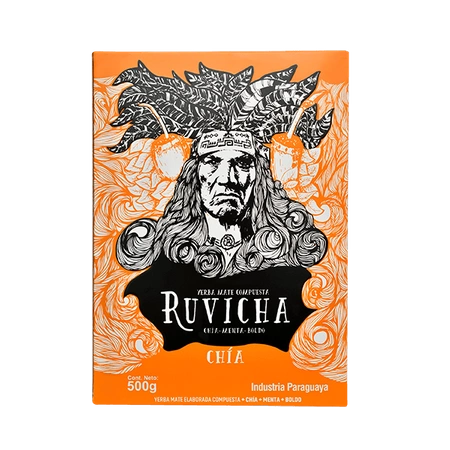 - Ruvicha Chia - yerba ahumada combinada perfectamente con semillas de chía ricas en vitaminas y minerales y aditivos herbales: menta y boldo, creando una composición agradable al gusto y fuertemente refrescante.