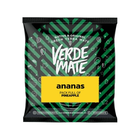 - Verde Mate Green Ananas 50 g es una yerba mate afrutada de Brasil con piña. La dulzura de esta fruta tropical, combinada con limoncillo , flor de espino y caléndula crea un conjunto armonioso y aromático.